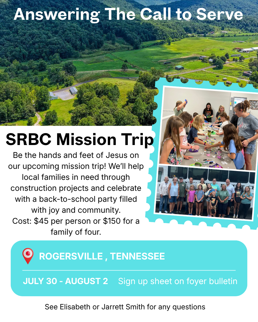 At Sandy Ridge Baptist Church, we are not just a congregation—we are a Christ-centered family of believers, united in our love for the Lord and His mission. We come together from all walks of life: nurses, carpenters, farmers, teachers, homemakers, retirees, students, and children, including our growing nursery. What binds us is the grace of Jesus Christ and the deep calling to live out His love and truth.